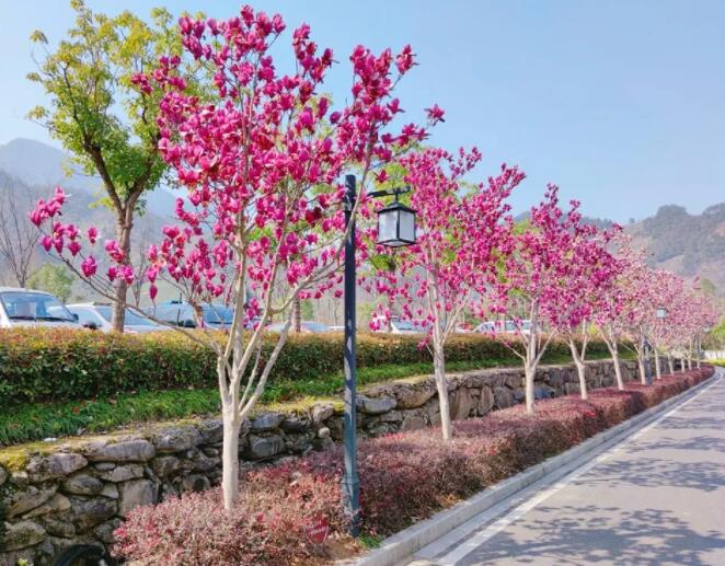 玉兰花:春风里,宝石红的花瓣层层叠叠,摇曳生姿,显得更加迷人。